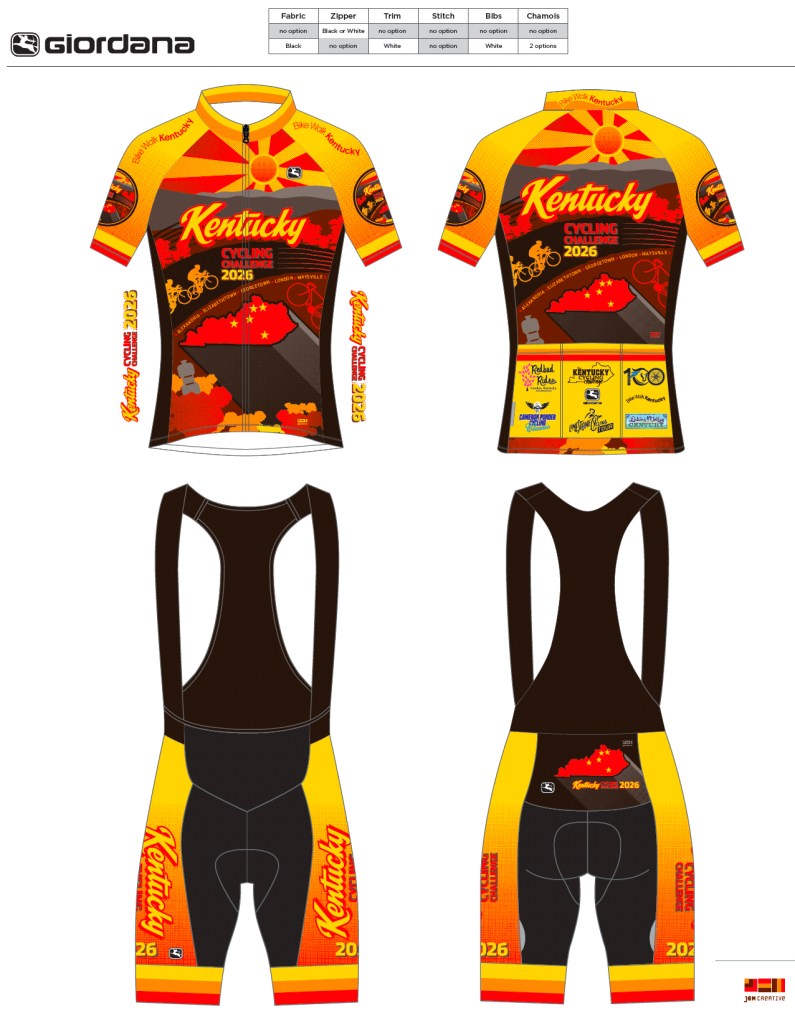 The first Kentucky Cycling Century Challenge took place in 2013. In 2018, it became the Kentucky Cycling Challenge (to be more inclusive of riders). Below are the jersey/kit designs over the years. (Note that the KCC did not take place in 2020 due to COVID-19.)